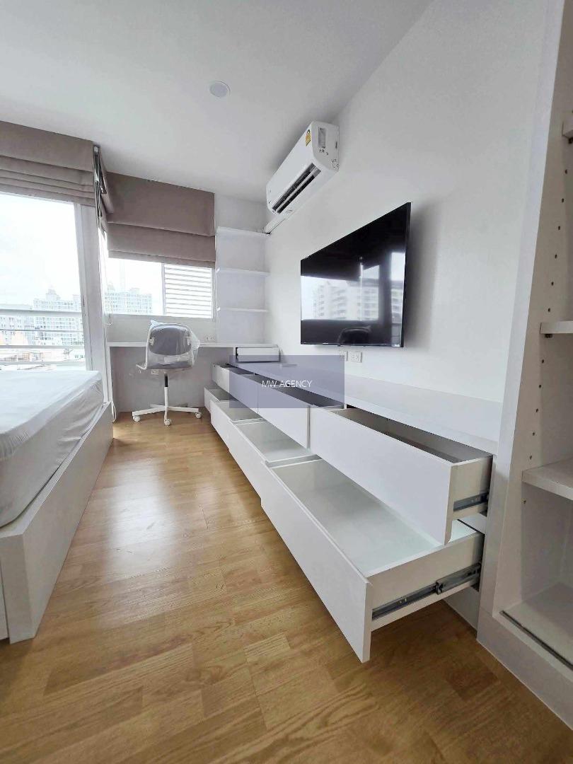 - เตียงบิ้วอินขนาด 6 ฟุต พร้อมที่นอน ( มีลิ้นชักเก็บของขนาดใหญ่ใต้เตียงฝั่งละ 2 ลิ้นชัก )