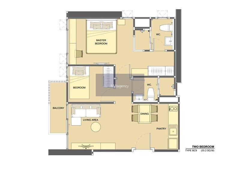 - รูปแบบห้อง 2 ห้องนอน 2 ห้องน้ำ