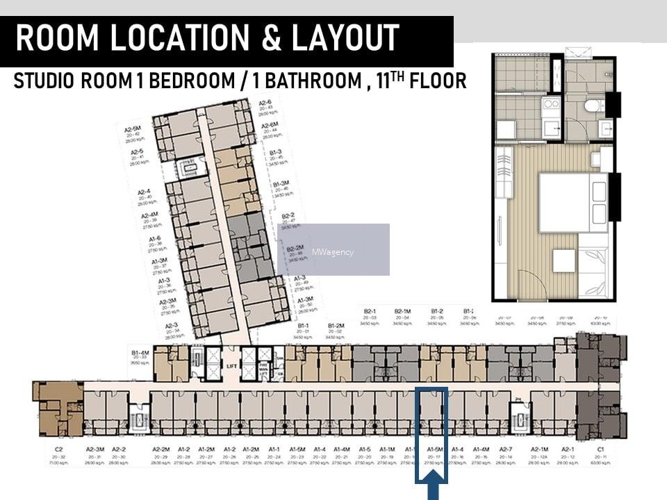 - รูปแบบห้อง 1 ห้องนอน 1 ห้องน้ำ
