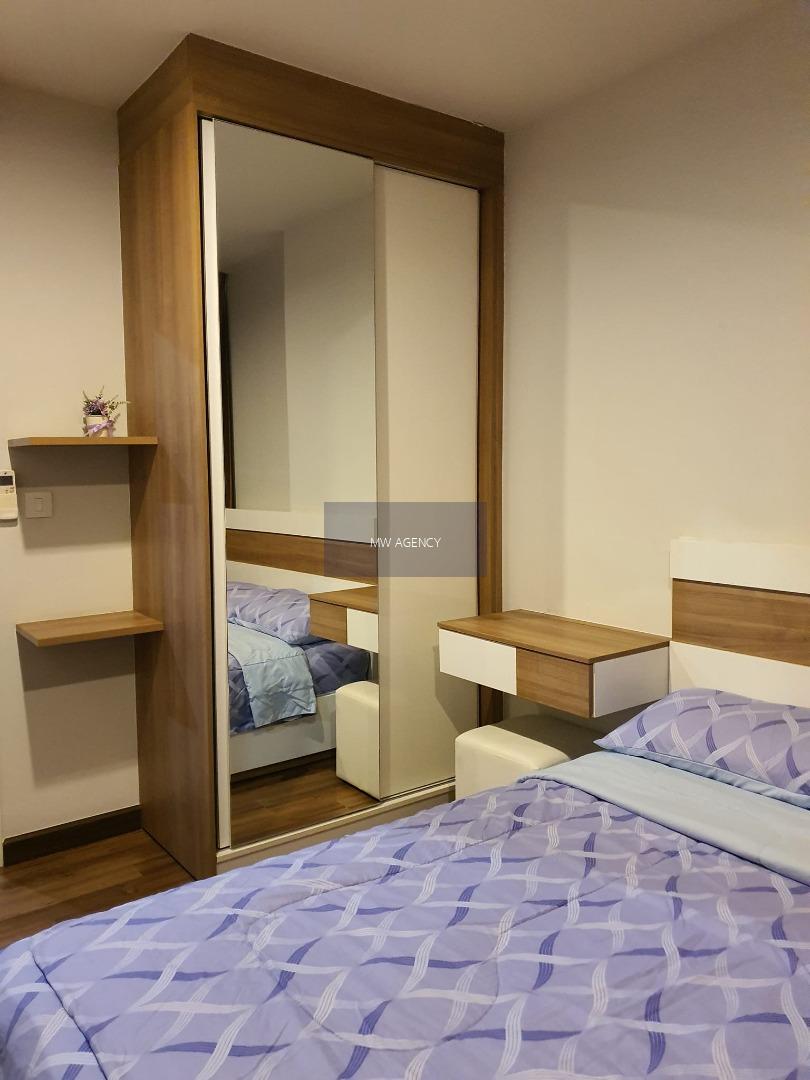 ห้องนอน - เตียง (Build in) ขนาด 5 ฟุต, ที่นอนยางพารา Theraflex Barrio i-Latex, ผ้ารองกันเปื้อน, ชุดผ้าปูที่นอน 5 ชิ้น, หมอน 2 ใบ, หมอนข้าง, ผ้าห่มนวม, ตู้เสื้อผ้า (Build in), โต๊ะเครื่องแป้ง (Build in), สตูล, โคมไฟหัวเตียง, ผ้าม่าน, แอร์ Daikin