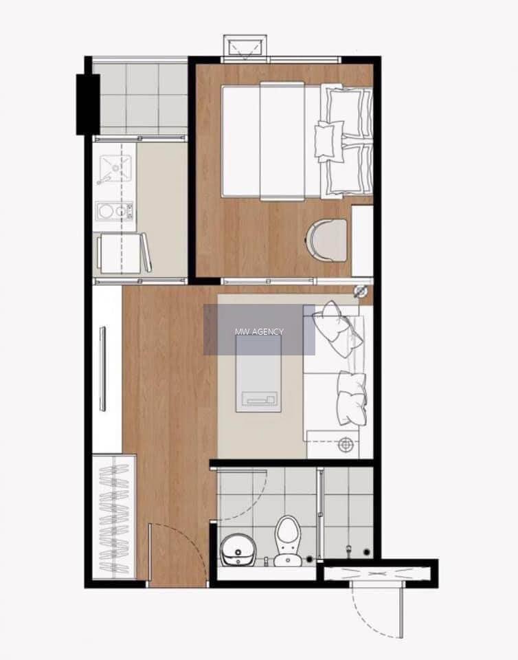 - รูปแบบห้อง 1 ห้องนอน 1 ห้องน้ำ