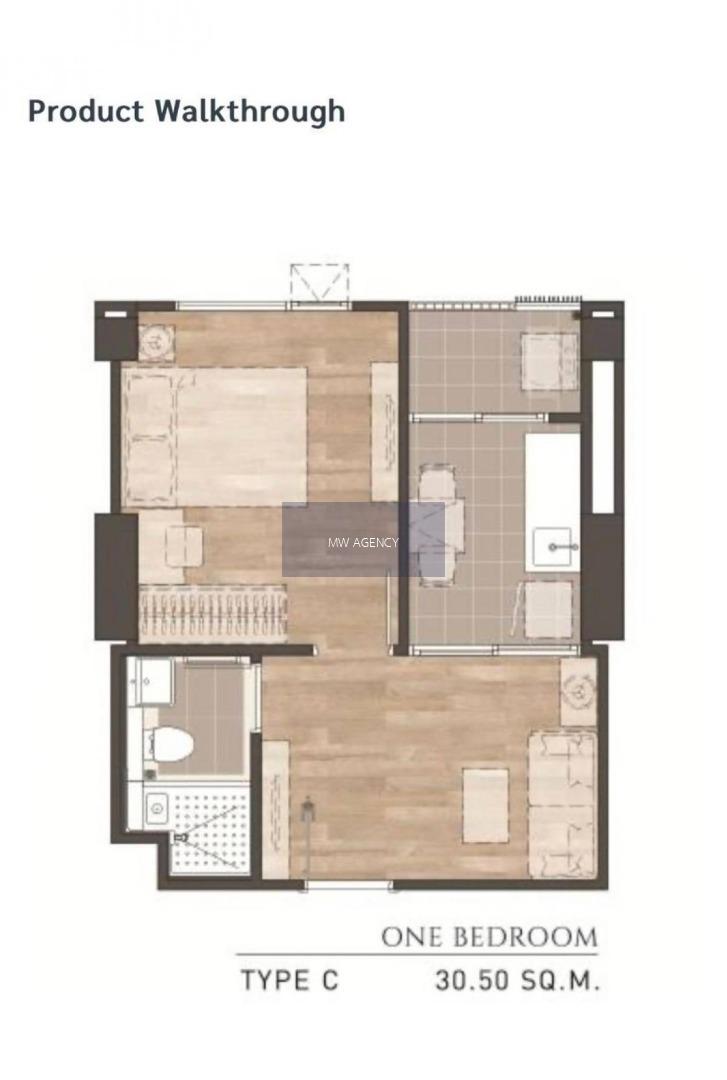 - รูปแบบห้อง 1 ห้องนอน 1 ห้องน้ำ