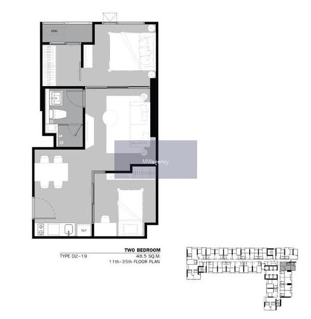 - รูปแบบห้อง 2 ห้องนอน 1 ห้องน้ำ