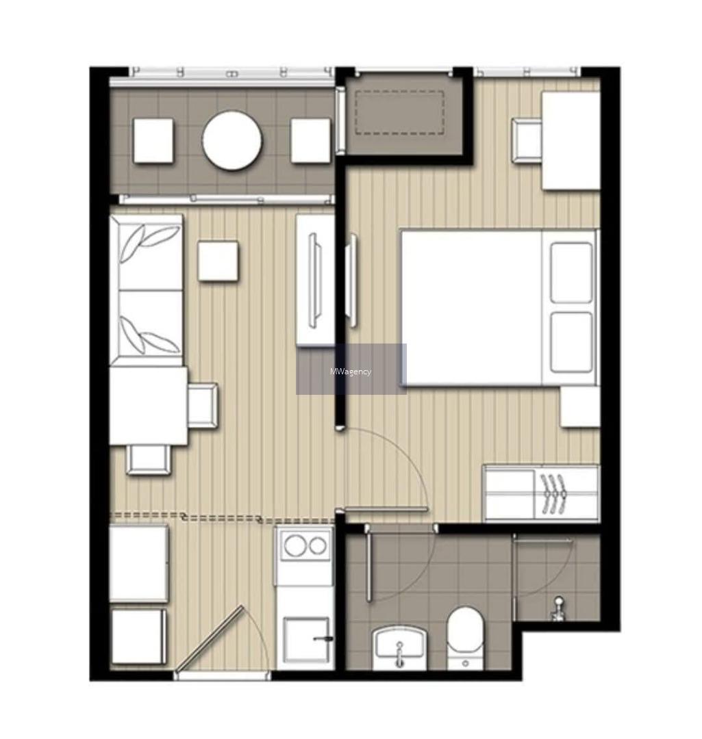 - รูปแบบห้อง 1 ห้องนอน 1 ห้องน้ำ 1 ห้องรับแขก