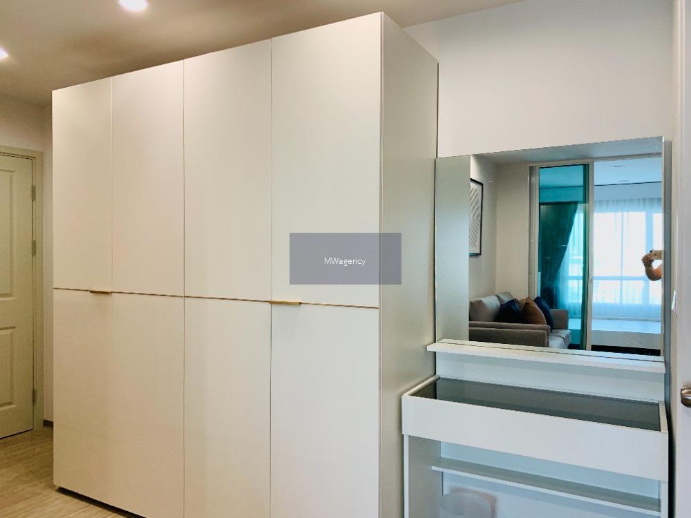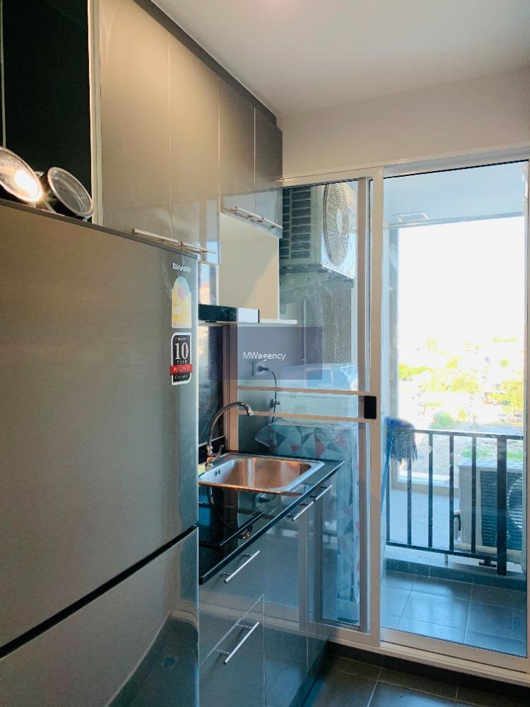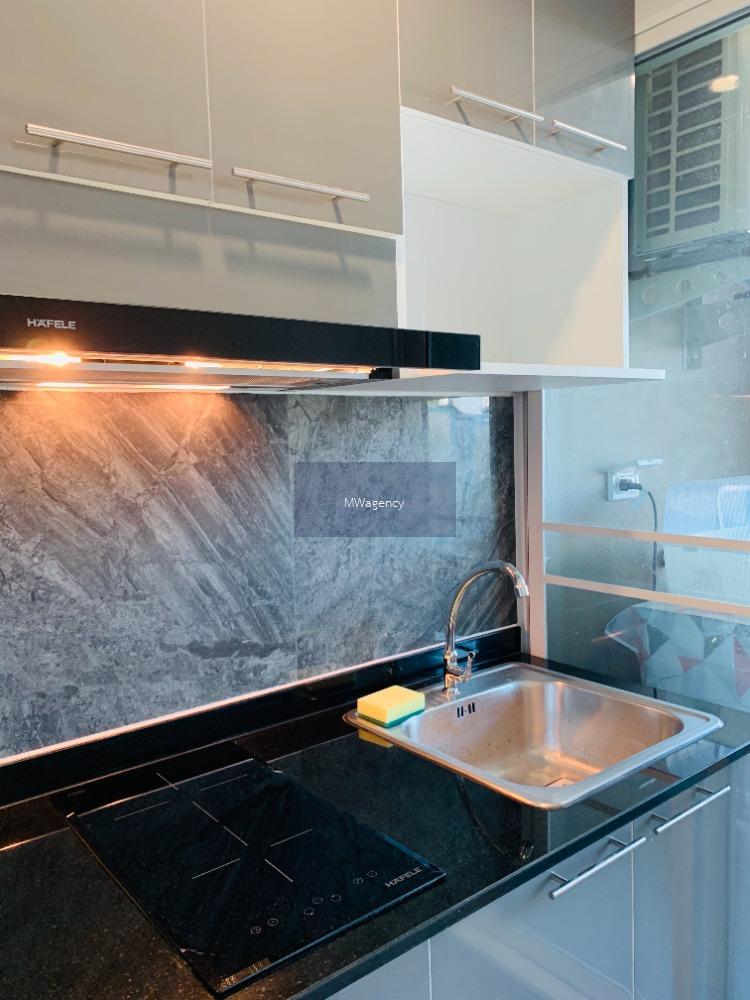 - Built-in Smart Kitchen มีตู้บน และตู้ล่าง พร้อมช่องใส่ไมโครเวฟ ผนังครัวติดกระจก