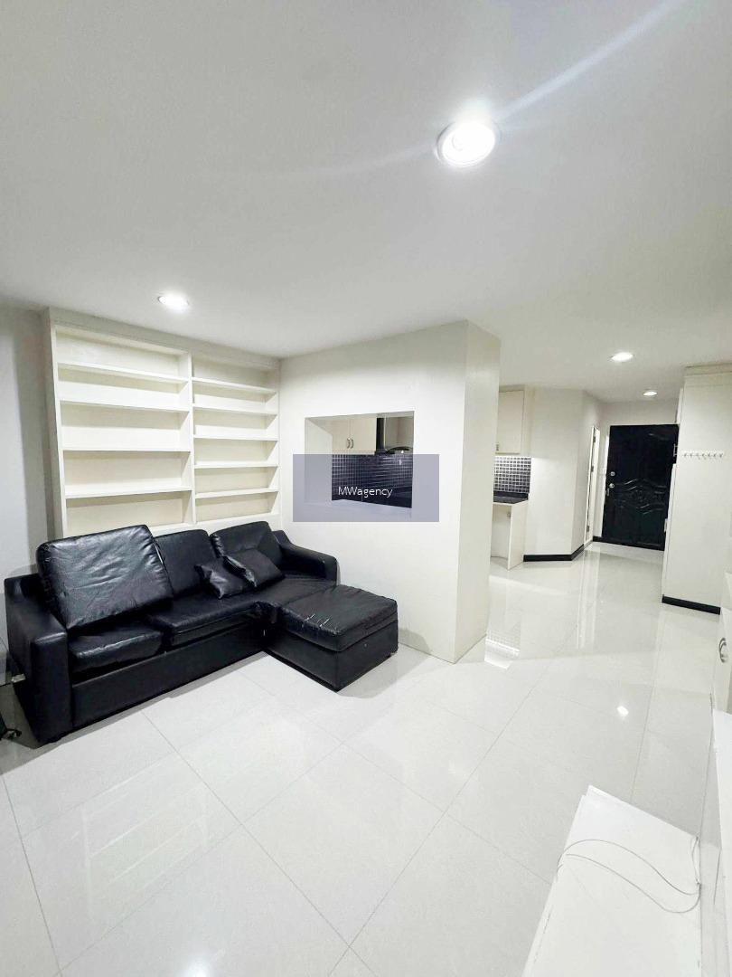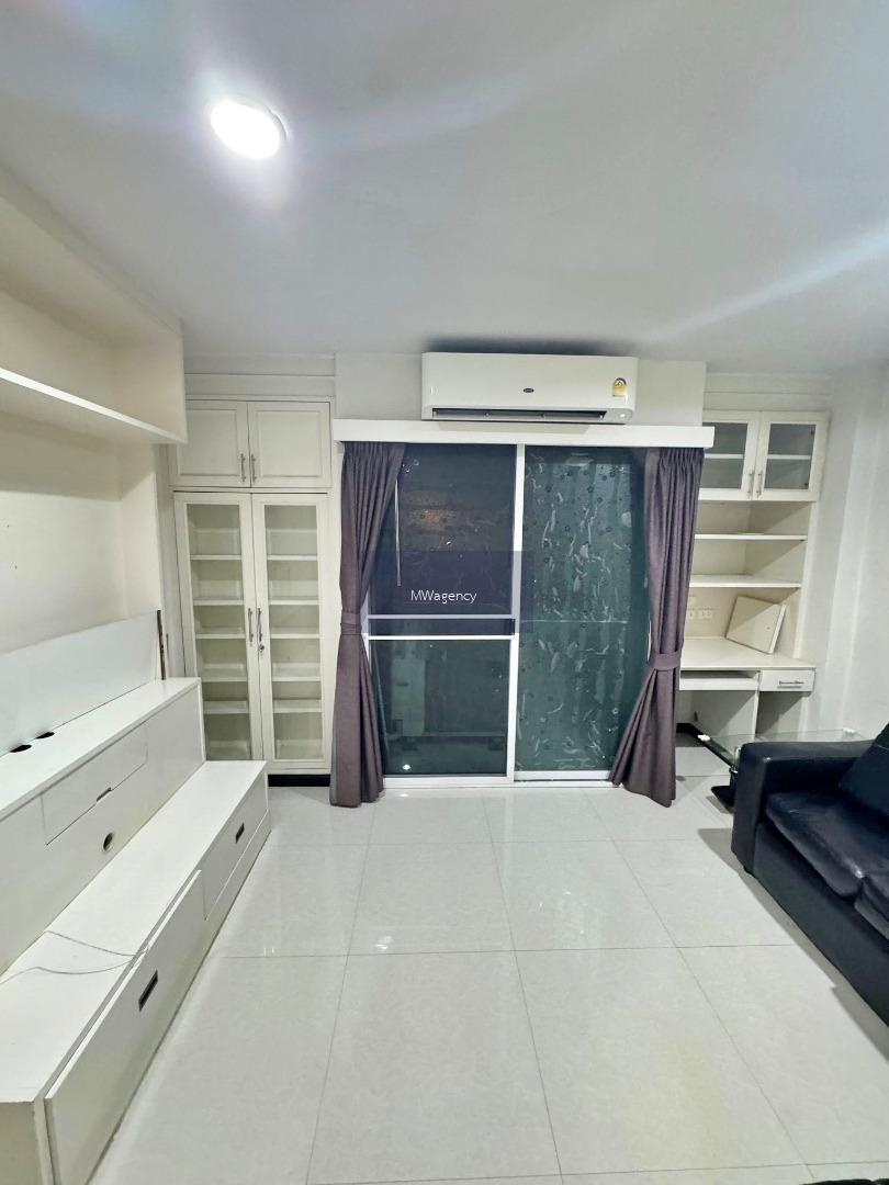 - ห้องนั่งเล่นกว้างขวาง : มีแอร์, โซฟาขนาดใหญ่, ชั้นวางทีวี, ชั้นเก็บของบิวท์อินเต็มผนัง, เชื่อมต่อระเบียง เปิดรับแสงธรรมชาติ