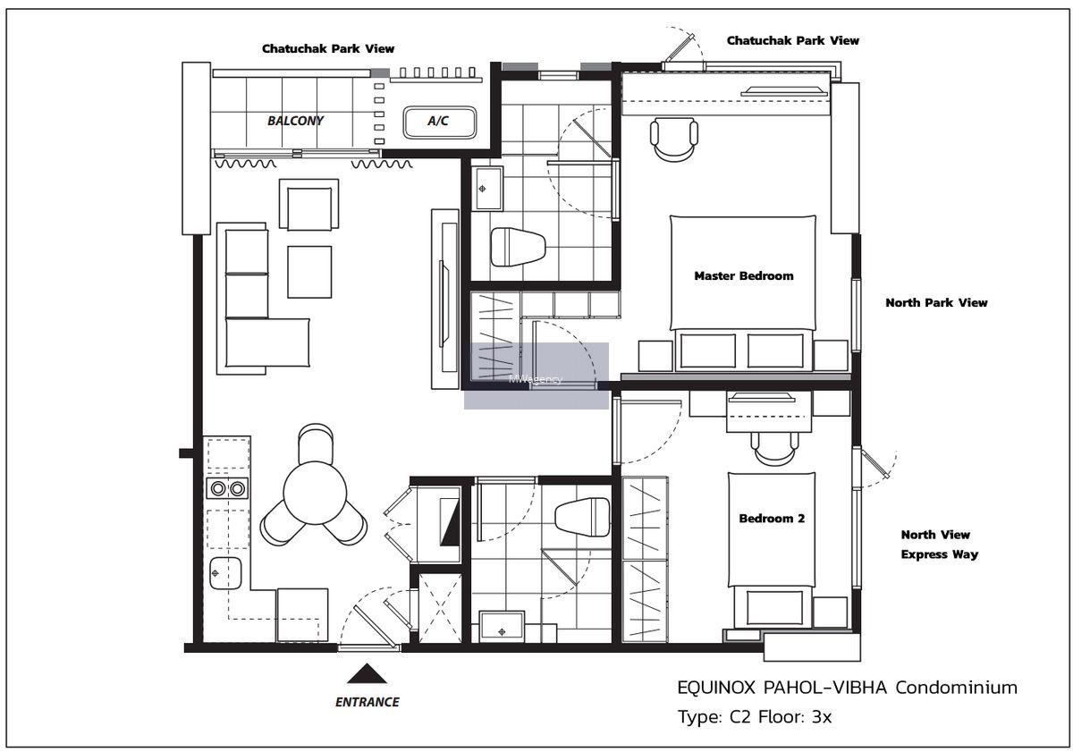 - รูปแบบห้อง 2 ห้องนอน 2 ห้องน้ำ