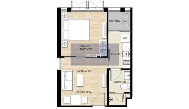 - รูปแบบห้อง 1 ห้องนอน 1 ห้องน้ำ