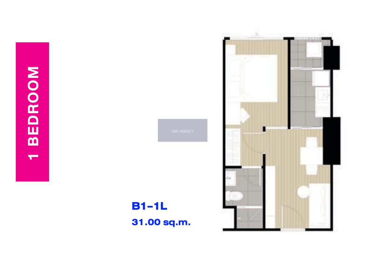 - รูปแบบห้อง 1 ห้องนอน 1 ห้องน้ำ