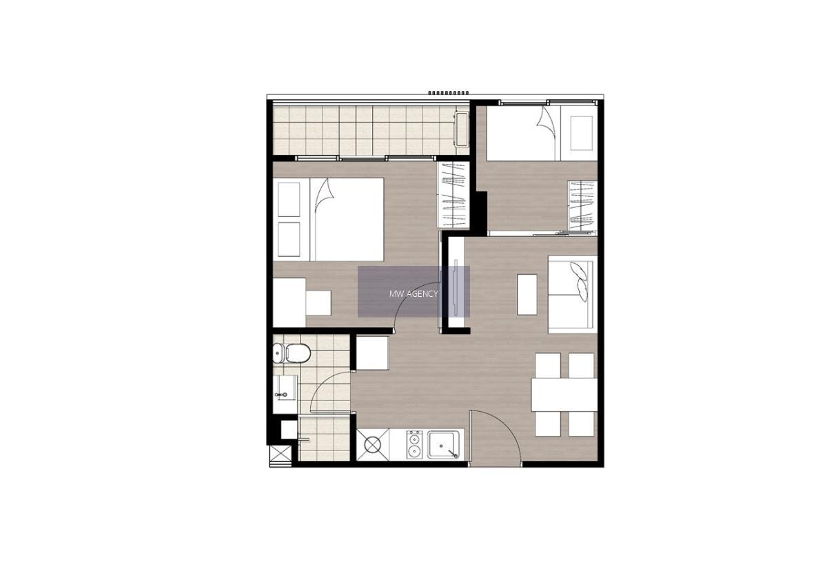 - รูปแบบห้อง 1 ห้องนอน 1 ห้องน้ำ