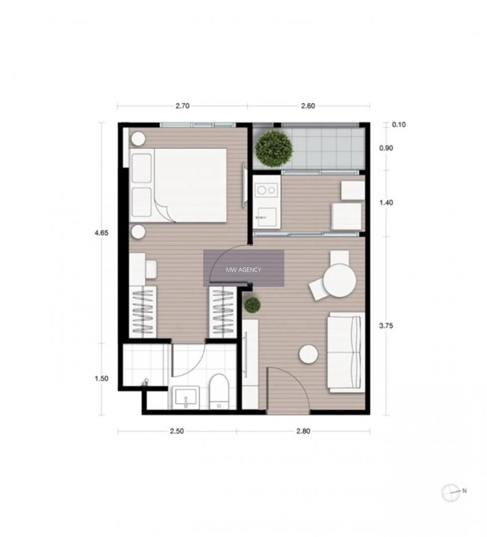 - รูปแบบห้อง 1 ห้องนอน 1 ห้องน้ำ