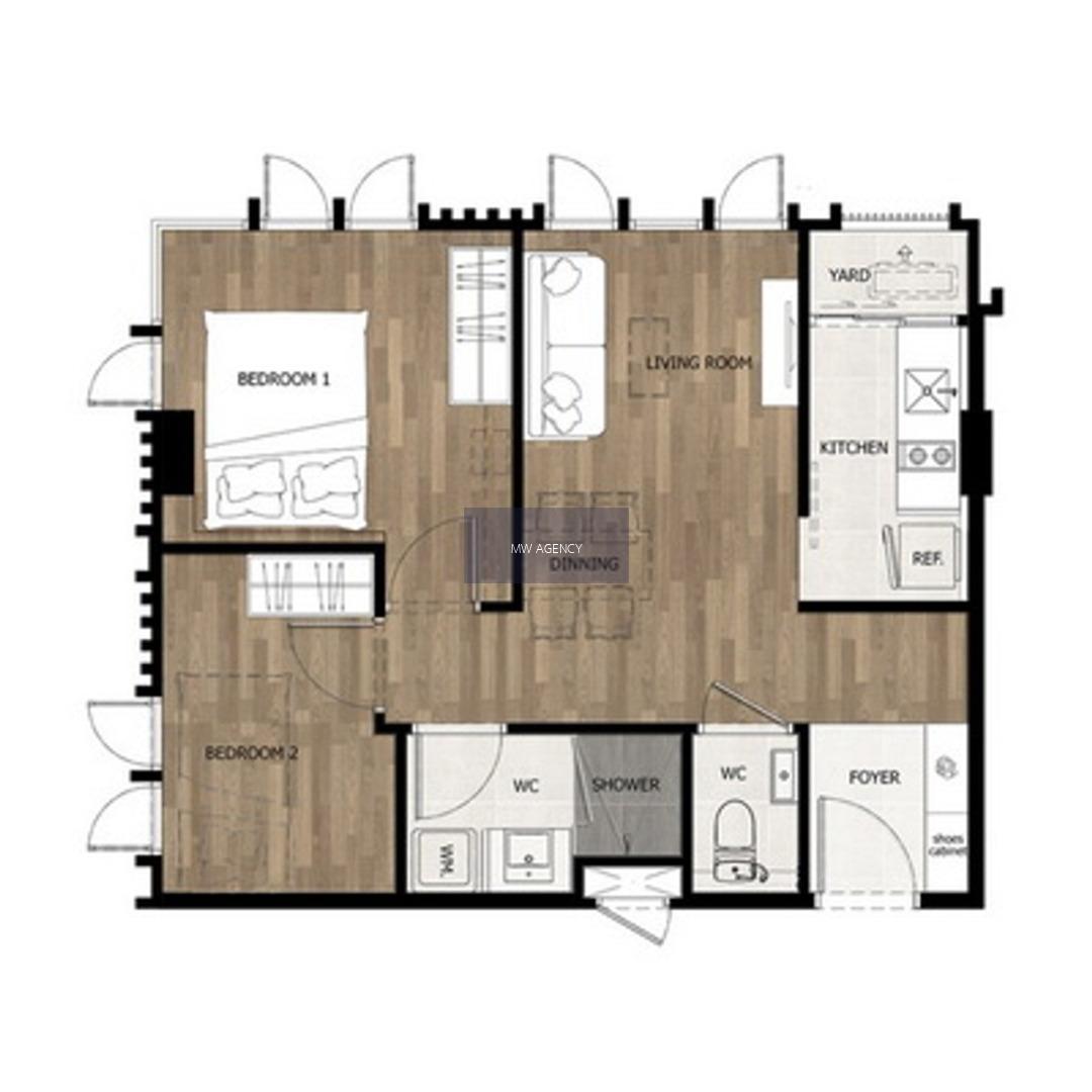 - รูปแบบห้อง 2 ห้องนอน 1 ห้องน้ำ