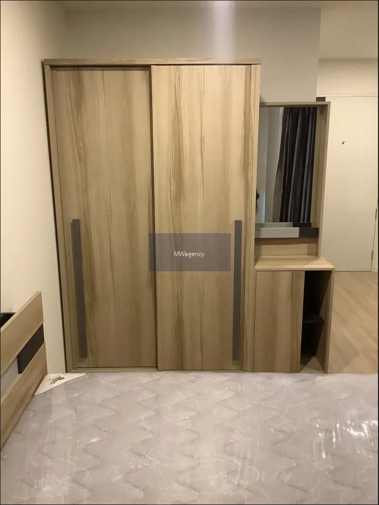 เตียงขนาด 5ฟุตพร้อมที่นอน ตู้หัวเตียง ตู้เสื้อผ้าแบบบานสไลด์