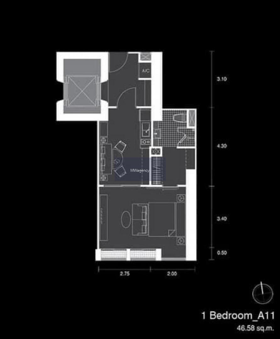 - รูปแบบห้อง 1 ห้องนอน 1 ห้องน้ำ