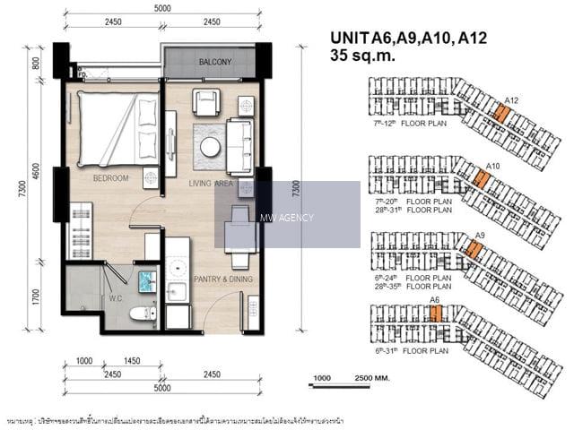 ขนาด 35 ตรม.ชั้น 7 ห้องแบบ 1 ห้องนอน วิวฝั่งกระทรวง (ทิศเหนือ)ฝั่งไม่ร้อน