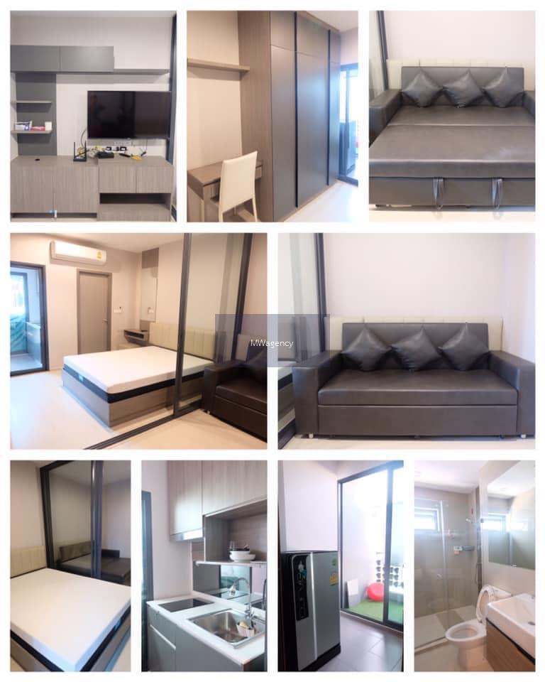 (ส่วนกลาง สระว่ายน้ำชิดขอบฟ้า เชื่อมต่อกับพื้นที่สวนขนาดใหญ่ ให้คุณดื่มด่ำทัศนียภาพยามค่ำคืน พร้อมห้องฟิตเนส, ห้องโยคะ, ห้องสมุด, ห้องเล่นเกมส์, Lounge และ Co-working space พร้อมกล้องวงจรปิดภายในโครงการ และ รปภ.ตลอด 24 ชั่วโมง ห้องขายพร้อมชุดครัวและเฟอร์นิเจอร์สไตล์โมเดิร์นแต่งมาให้แบบ Fully Furnished) 10,500 บาท/เดือน