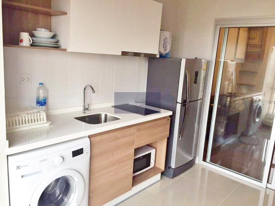 ทีวี ตู้เย็น ไมโครเวฟ เครื่องซักผ้า เตาไฟฟ้า เครื่องทำน้ำอุ่น พร้อมห้องครัวbuilt-in มีประตูกั้นแยกส่วน